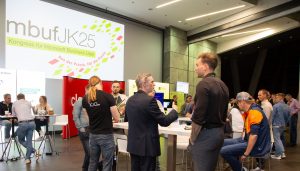 Weiter ging es mit einer inspirierenden Keynote von Microsoft Vertriebsleiter Cloud & AI Mittelstand, Patrick Schidler, darüber, wie vertrauenswürdige KI das wirtschaftliche Potenzial von Unternehmen exponentiell steigern und einen nachhaltigen Wettbewerbsvorteil sichern kann. Bei der zweiten Keynote mit anschließender Podiumsdiskussion besprach Rebecca Haubenreisser Ansatzpunkte, Lessons Learned und Ideen für eine nachhaltige Performance-Kultur – jenseits von Worthülsen und blumigen Visionen. Nach einer kurzen Netzwerk- und Erfrischungspause verteilten sich die Teilnehmer:innen dann entsprechend der eigenen Präferenzen auf die in vier Tracks parallel angebotenen Vorträge von Sponsoren, Mitgliedern und MVPs. Alle Vorträge befinden sich zum Nachlesen im Kongressordner in unserem Teams „mbuf Forum“.
